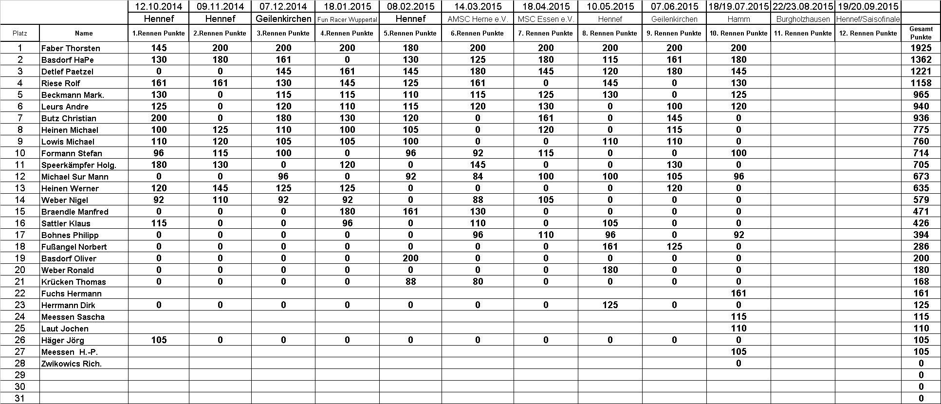 Rangliste nach Hamm!