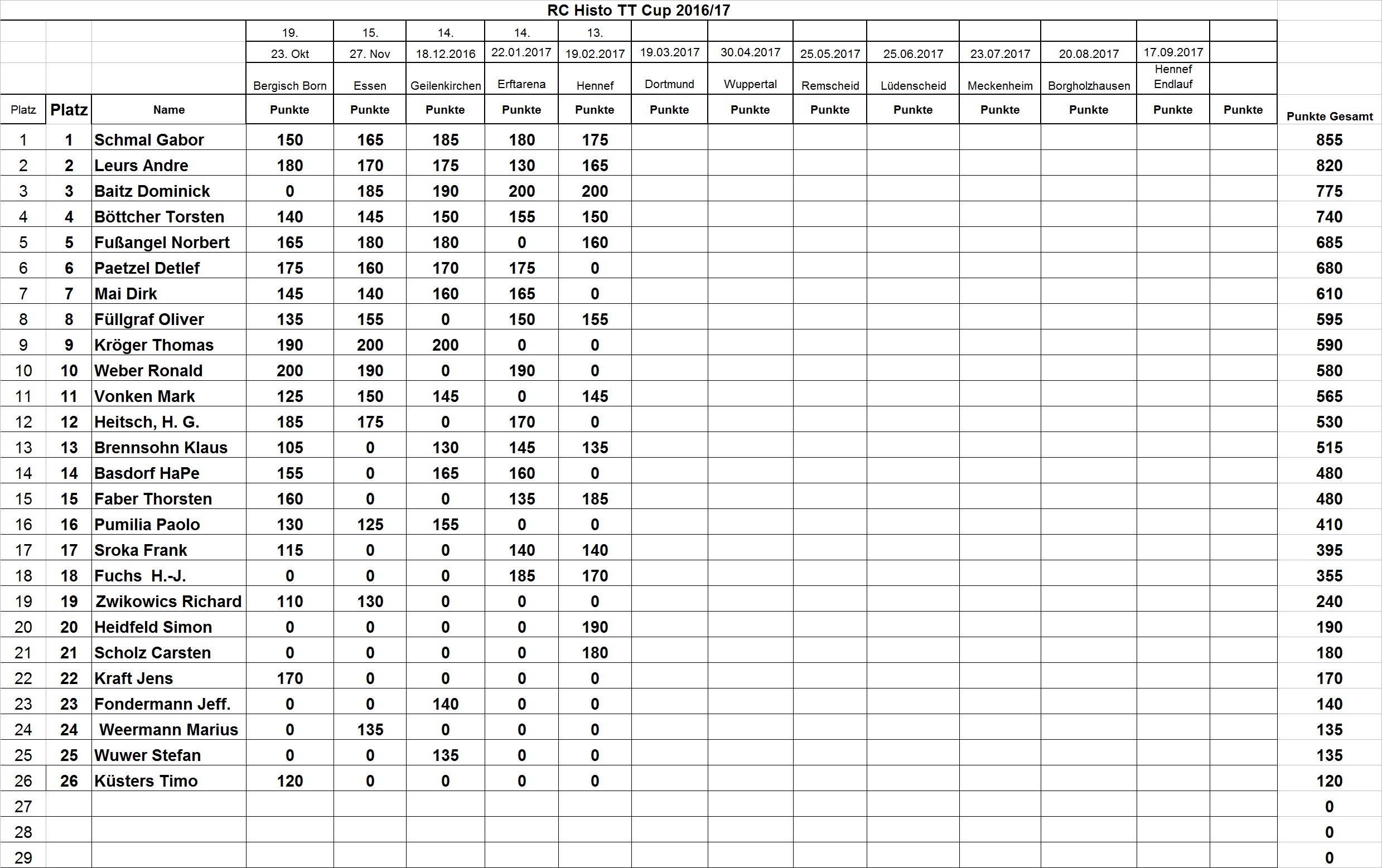 Dann noch die Rangliste.
