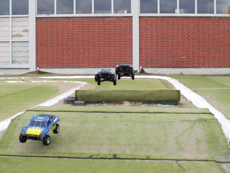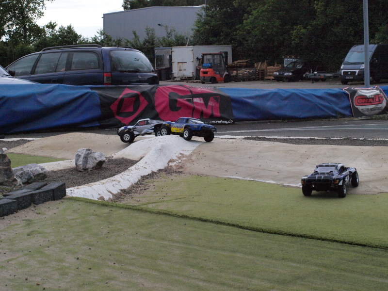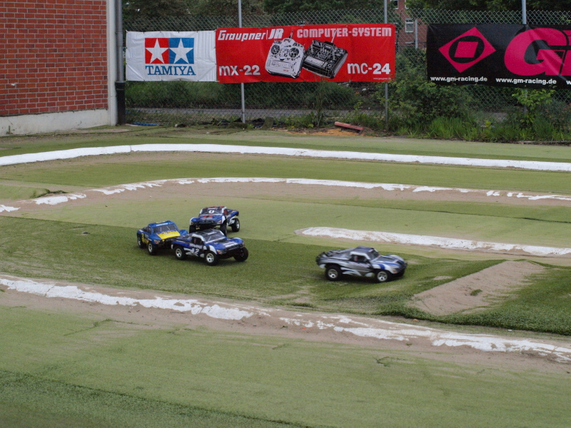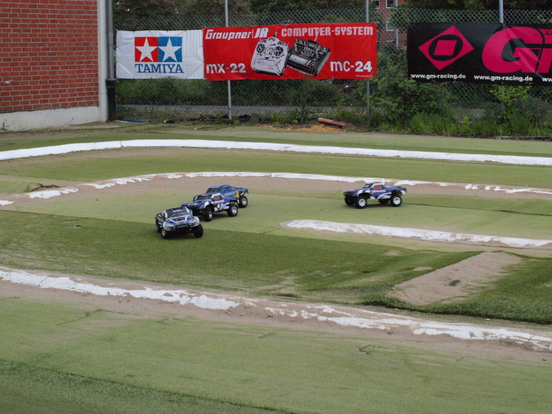 Aber das der Kunstrasen auch noch in Nassen Bedingungen Spasss macht zeigen die Bilder der Slash Fahrer die sich nicht vor ein paar Tropfen fürchten. Morgen wird es wohl ähnlich sein, aber die Strecke ist auch im Nassen immer Toll zu Fahren.