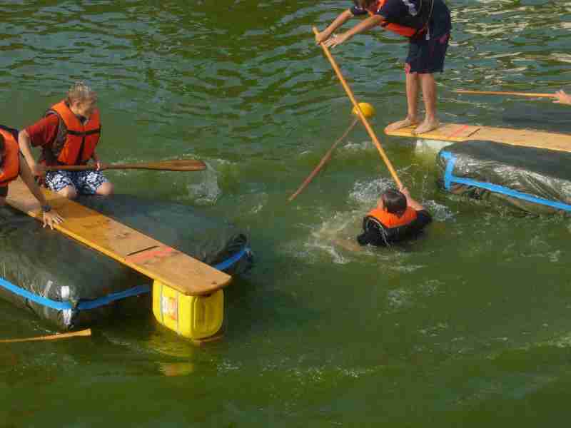 Unser Weiher in der Ortsmitte ist das ideale Gewässer, um auf selbstgebauten Booten aus