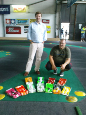 Das Rennen hat mal wieder sehr viel Spaß gemacht. Über das Streckenlayout kann man, wie auf allen Rennstrecken, eine unendliche Diskussion führen. Dem einen liegt ein eckiger, dem anderen ein runder Kurs besser. Ich bin mit meinem HB ganz gut um den Kurs gekommen, von den fahrerischen Unzulänglichkeiten abgesehen. Auch in Leipzig gilt: Triffst du einen Teller, triffst du die nächsten 2 auch. Was mir überhaupt nicht gefallen hat, waren die Schanzen. Mit einer Bodenfreiheit von ca. 2cm an einer Schanze (na ja, nicht gleich Schanze - halbrunder Buckel aus Spanten nur mit Teppich überzogen) hängen zu bleiben und sich dabei den Frontrammer zu zerstören, habe ich mit meiner langjährigen Offroad-Erfahrung noch nicht erlebt. die Anfahrten des Tables waren ebenfalls zu steil und er war viel zu weit hinten auf der Geraden eingebaut. Wenn Ihr eure Offroad-Teilnehmer behalten wollt, solltet Ihr mit diesen Schanzen ein schönes Lagerfeuerchen machen und ein paar neue bauen. Ich empfehle eine Beratung bei Törtchen, er hat die Schanzen auf unserer Offroad-Strecke entworfen und gebaut.